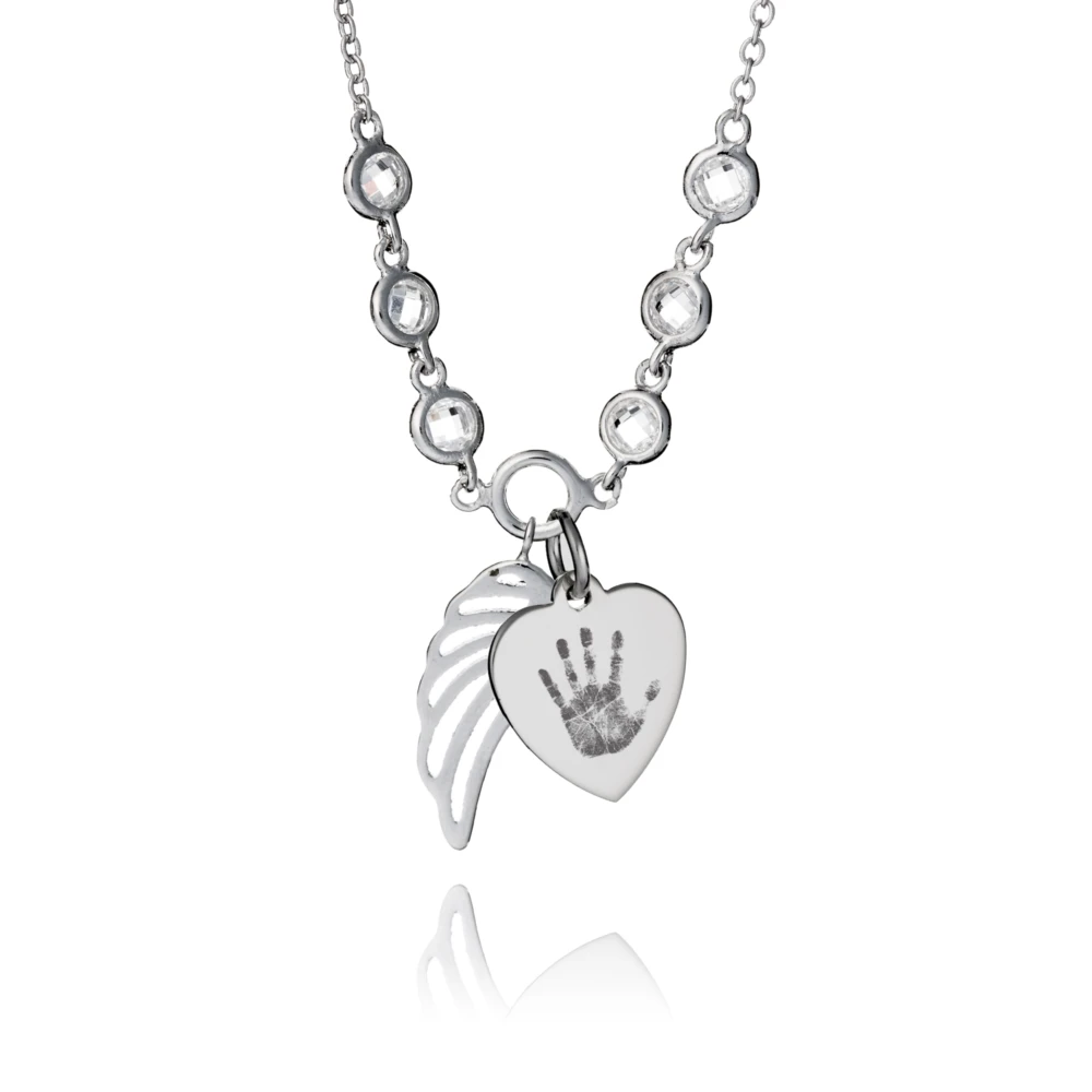 Adding a handwritten message is the perfect way to create something of style with heart, and our Handprint or Footprint Angel Wing Necklace makes a notably special gift, certain to be appreciated by anyone who has lost someone special in their lives. Whether it’s a gift for you or for someone you know, our CZ & Sterling Silver Angel Wing Necklace is a timeless take on jewellery to treasure forever.
