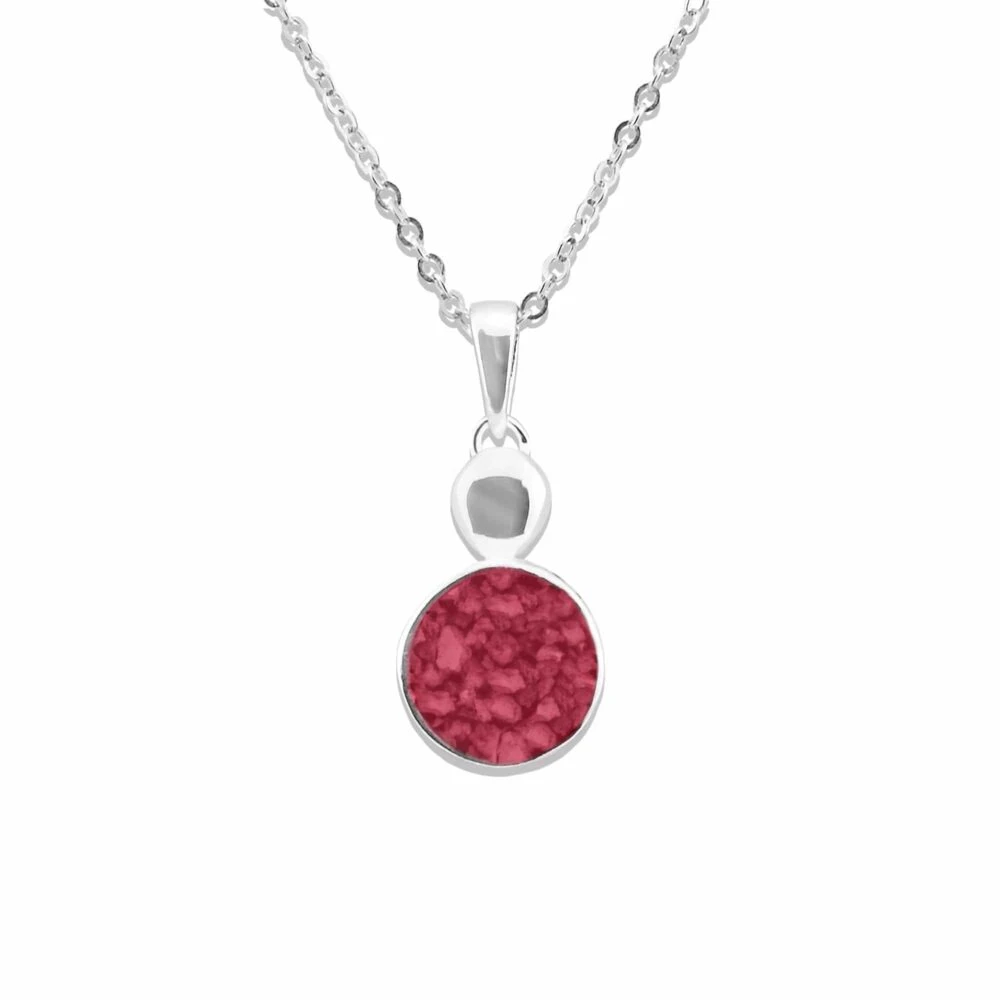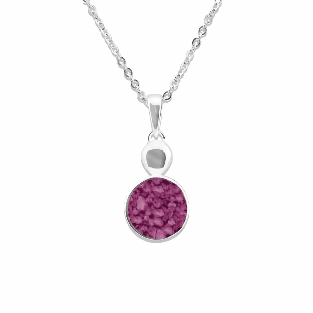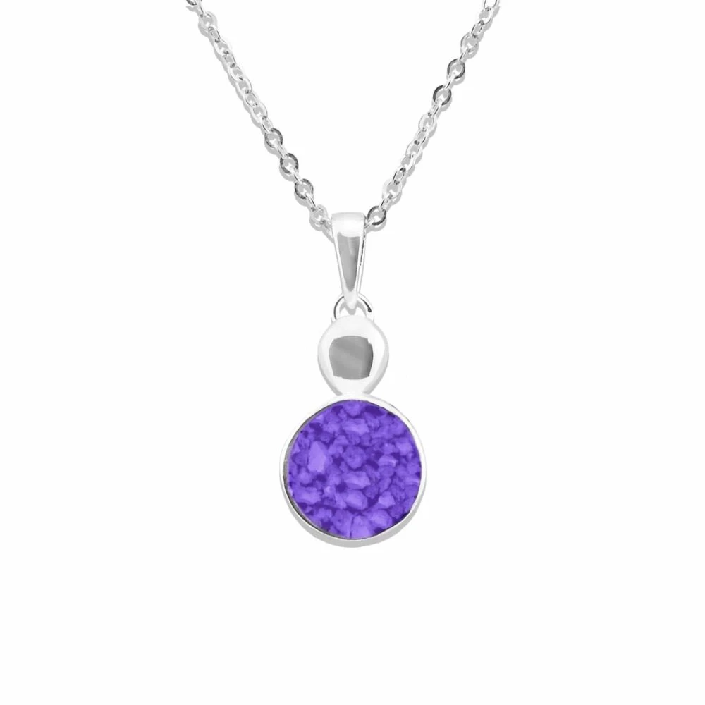 The Ladies Sterling Silver Delicate Drop Memorial Pendant has a small circular mount for the coloured resin containing the cremation ashes, and optional diamond dust, and this is attached beneath a tiny silver ball which then links to the loop for the included 45-cm chain to pass through. Both are made from 925 Sterling Silver with a Rhodium plating to prevent tarnishing.