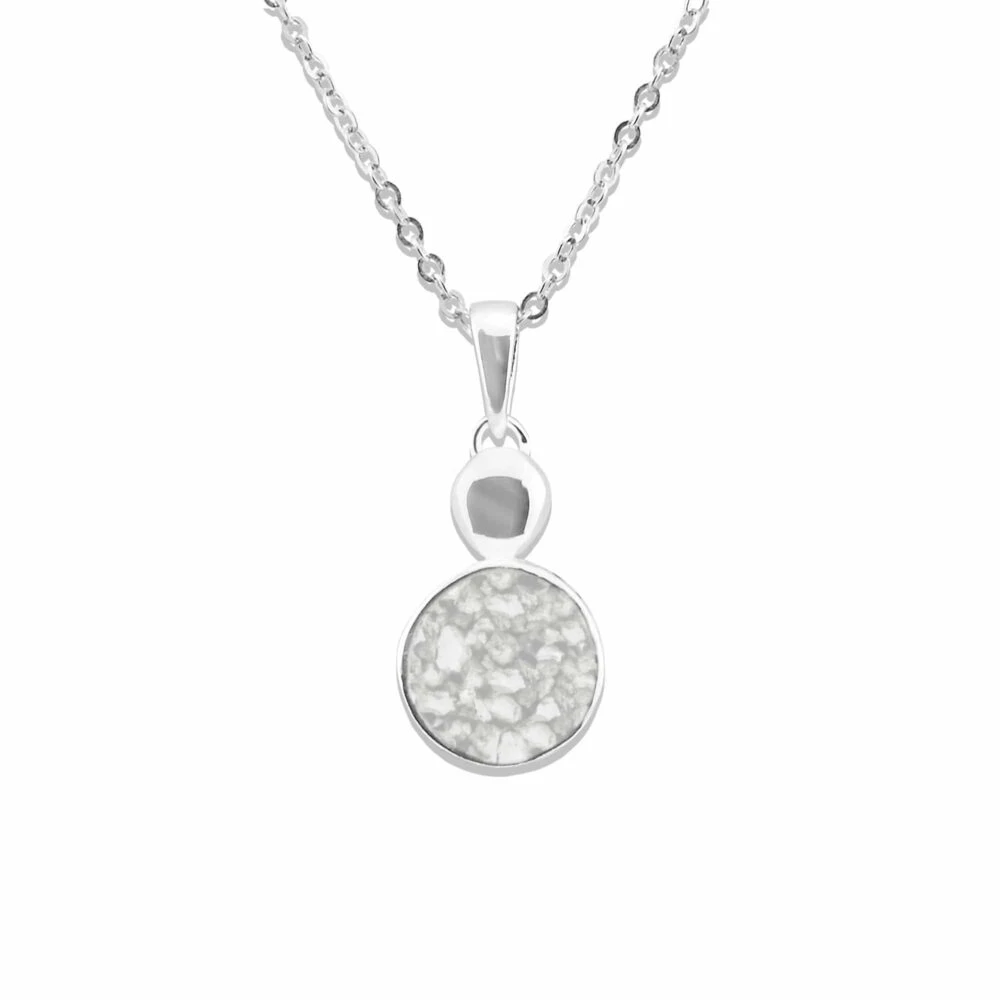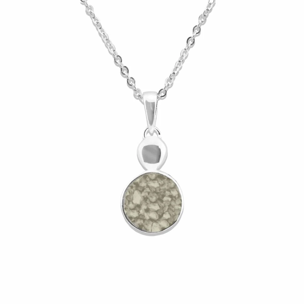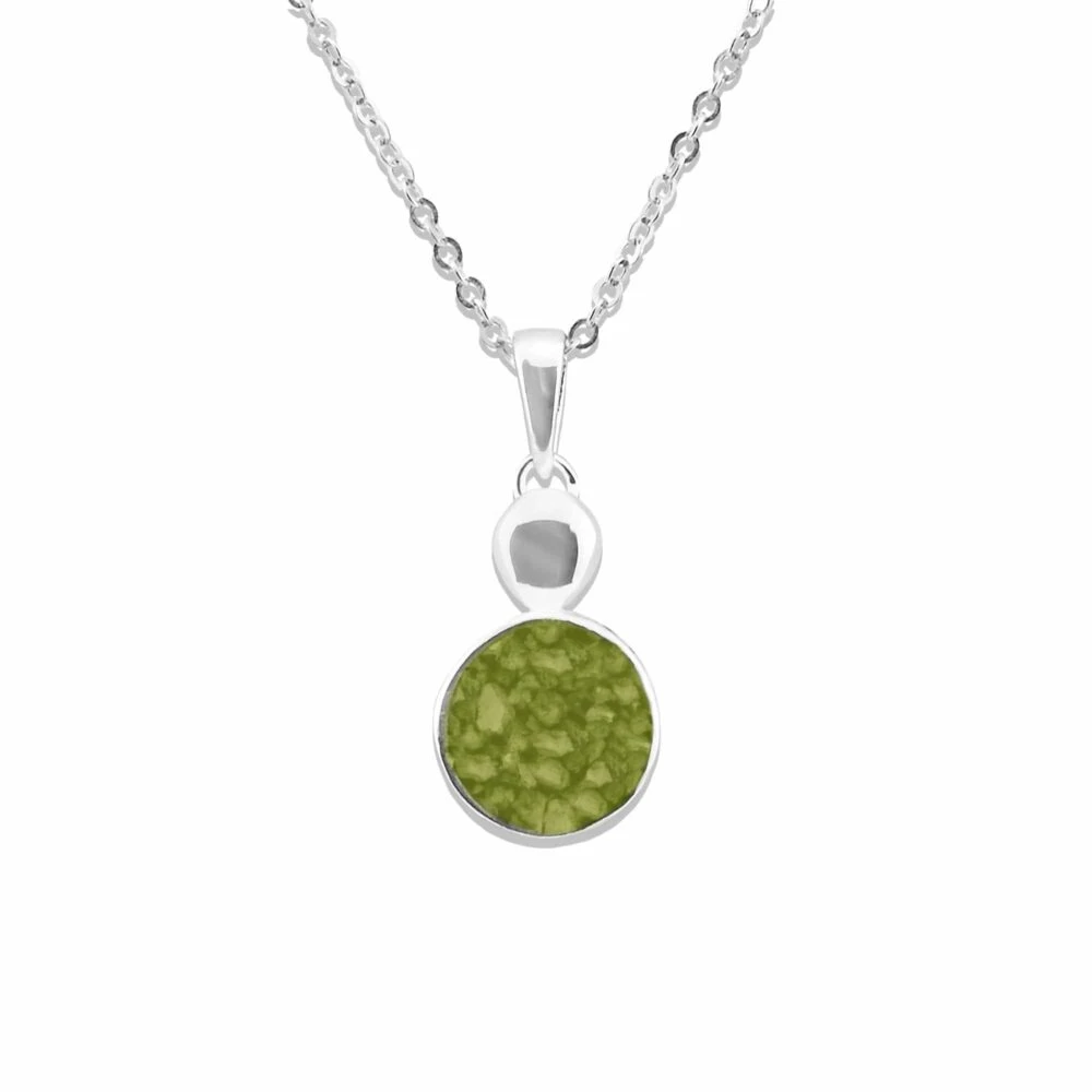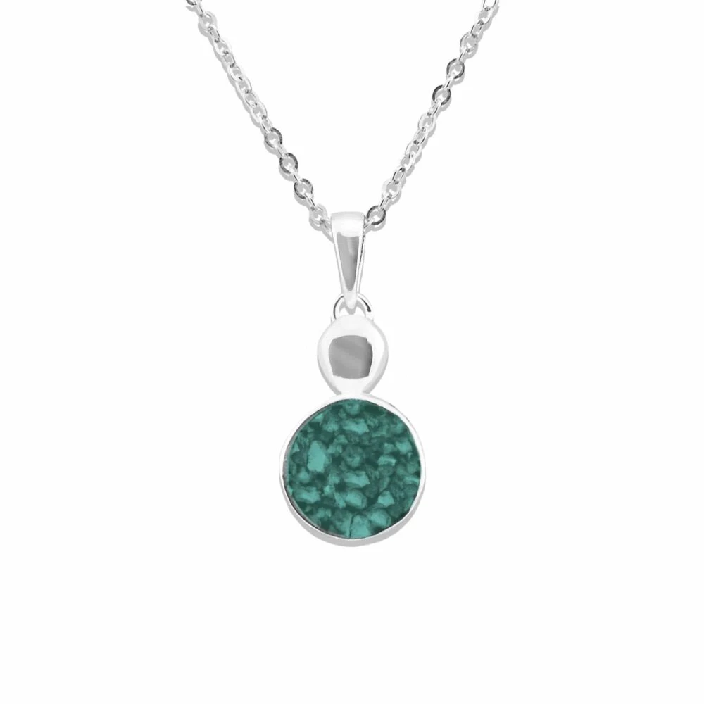 The Ladies Sterling Silver Delicate Drop Memorial Pendant has a small circular mount for the coloured resin containing the cremation ashes, and optional diamond dust, and this is attached beneath a tiny silver ball which then links to the loop for the included 45-cm chain to pass through. Both are made from 925 Sterling Silver with a Rhodium plating to prevent tarnishing.