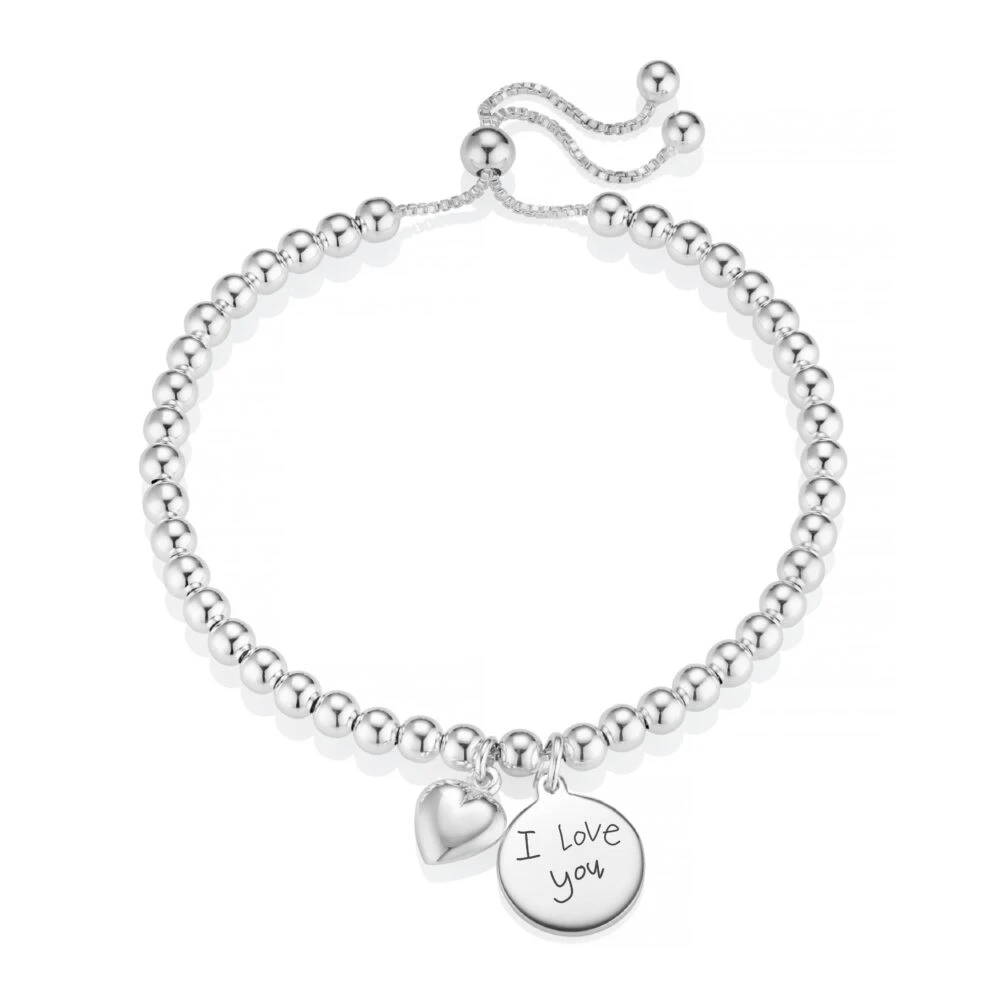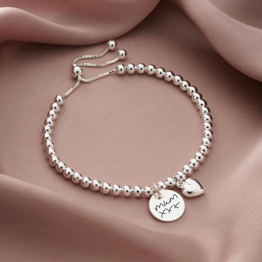 Crafted from premium sterling silver, this bracelet showcases a stunning 14mm disc charm. But what truly sets it apart is the personal touch it carries. The disc is meticulously engraved with the actual handwriting of your beloved, extracted from a treasured card or note. Each stroke and curve are faithfully replicated, immortalising their unique script in a piece of jewellery that will hold a special place in your heart.