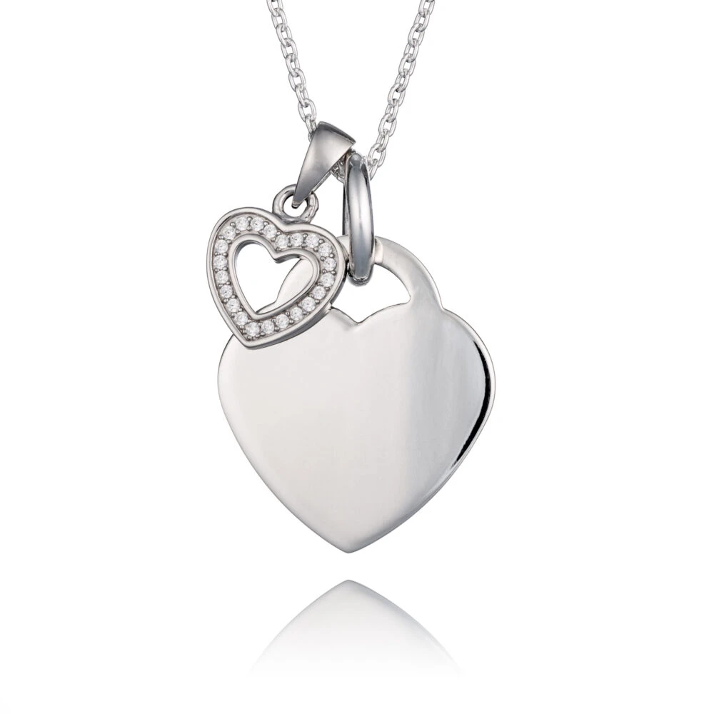 19mm Sterling Silver Heart – 10mm CZ Heart Charm – 18 Inch Chain