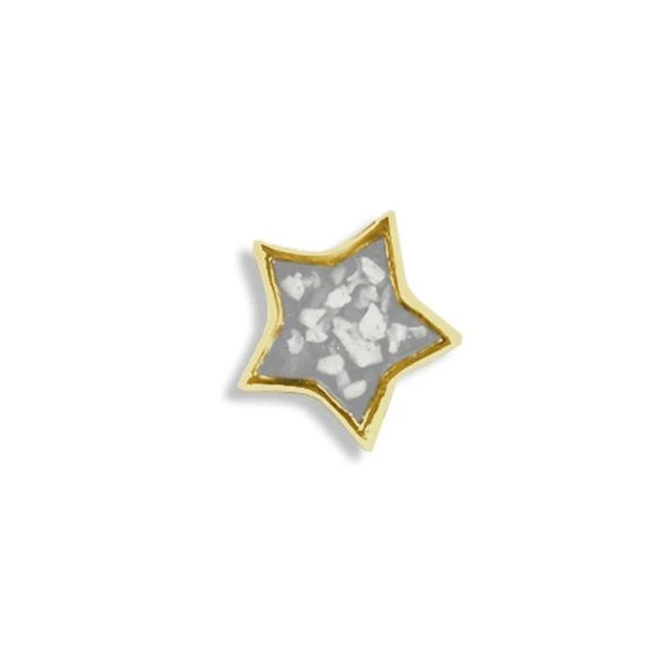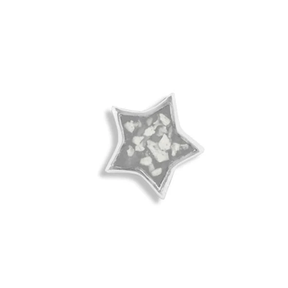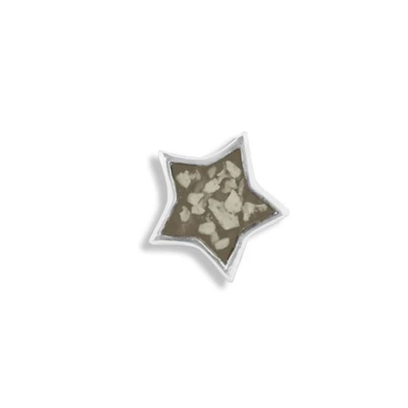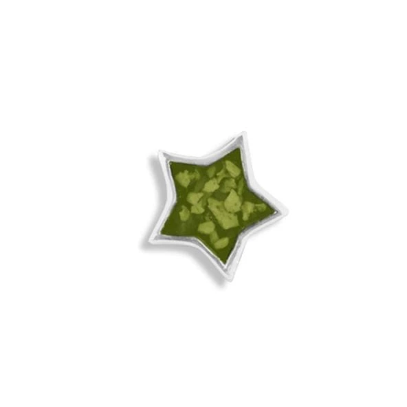 The Large Star Cremation Ashes Element for Glass Lockets is meticulously crafted from hallmarked 925 Sterling Silver which is Rhodium plated. The centre holds the coloured resin containing a very small amount of cremation ashes. There is a choice of twelve resin colours and the option to add real diamond dust for extra sparkle. This star “Element” can be used alone or combined with others inside the locket.