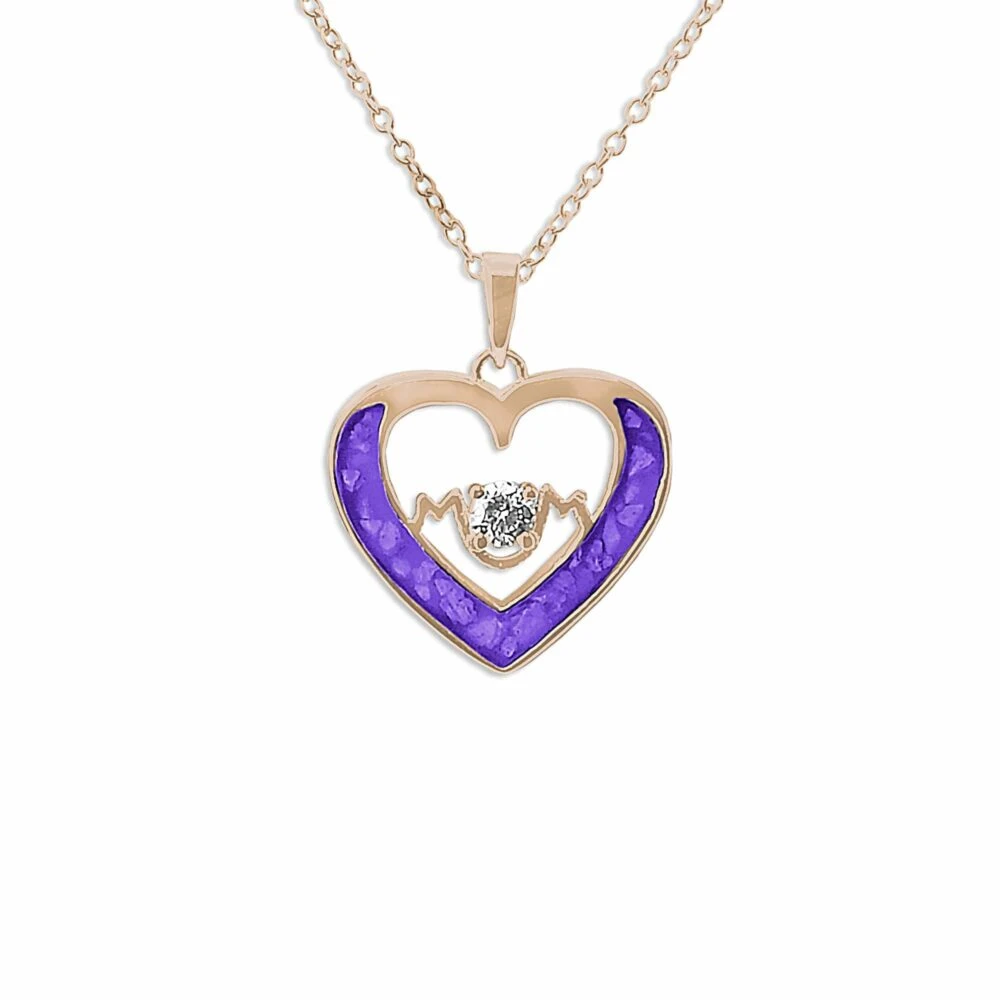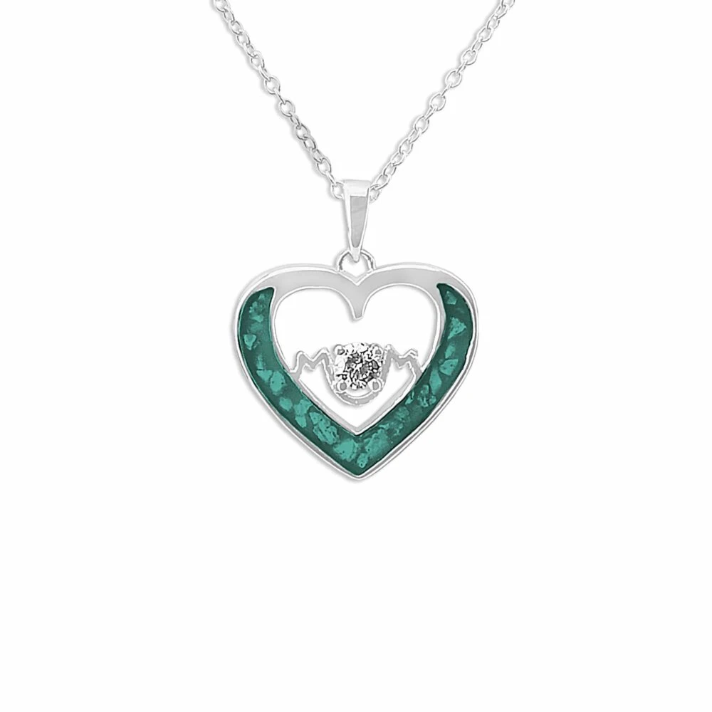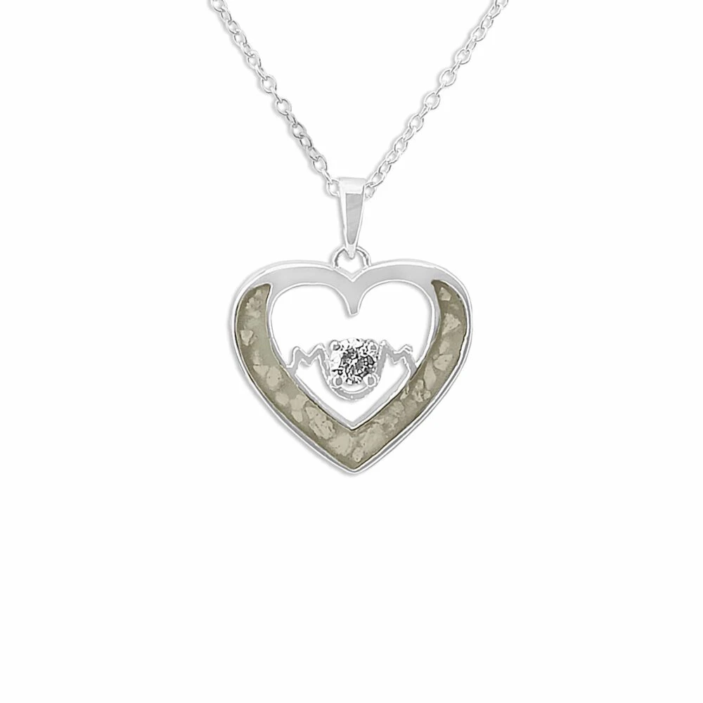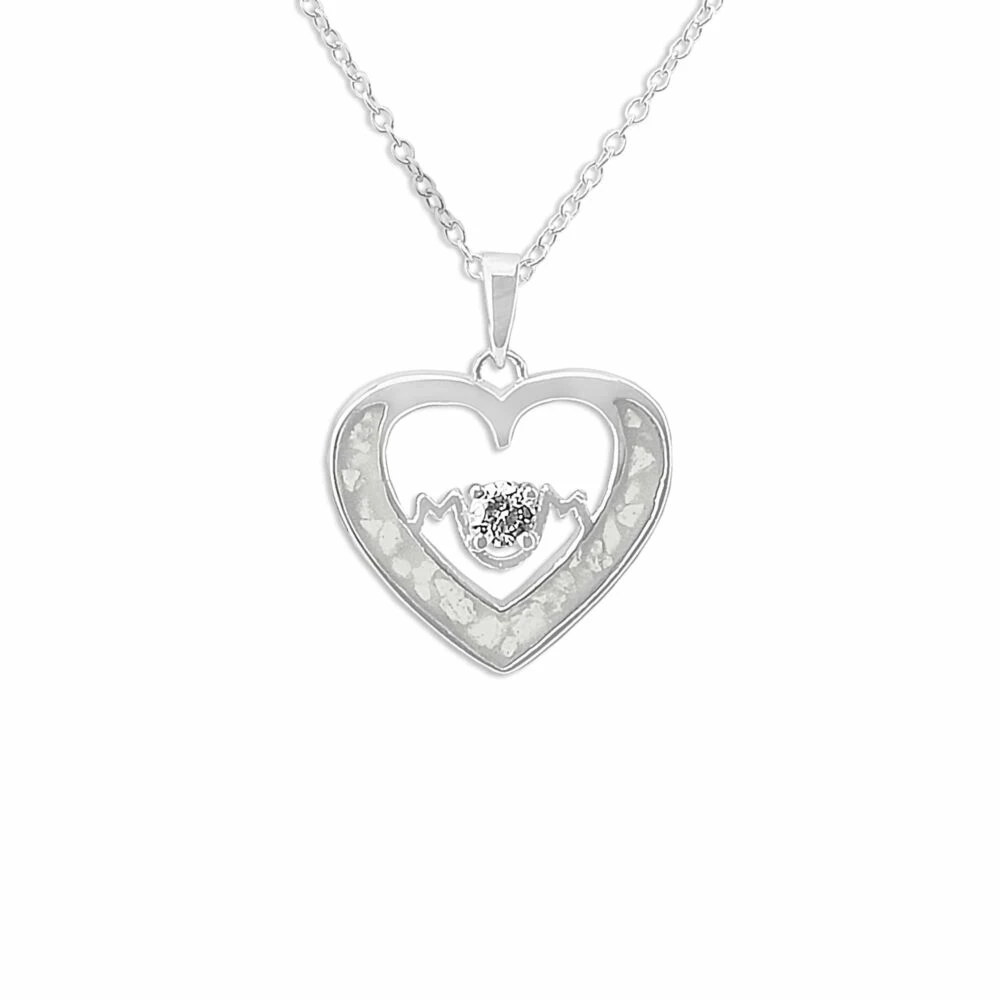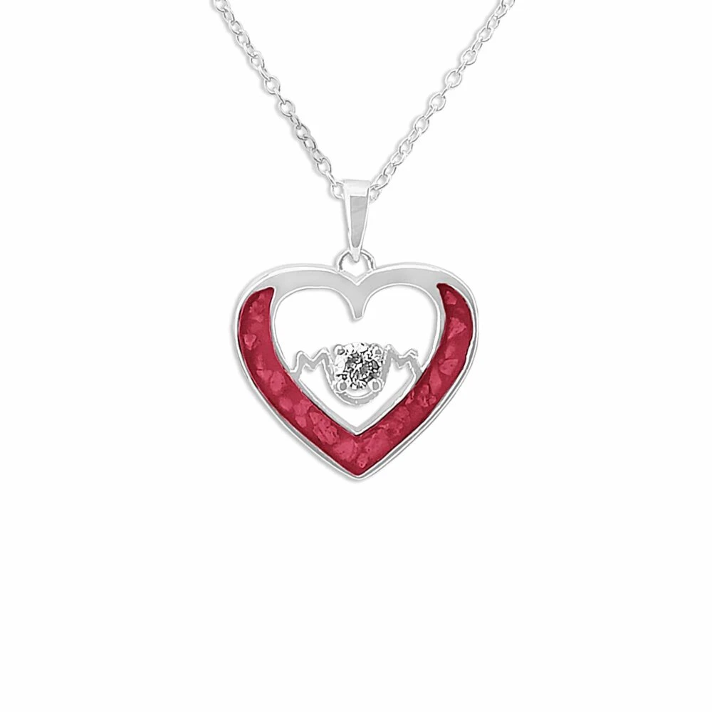 This ladies pendant in the form of a heart has the word “Mum” formed with a Fine crystal in the centre. The resin containing the cremation ashes is set around the lower part of the heart and comes in twelve colours with the option of adding diamond dust. The pendant comes in a gift box and with an eighteen-inch chain.