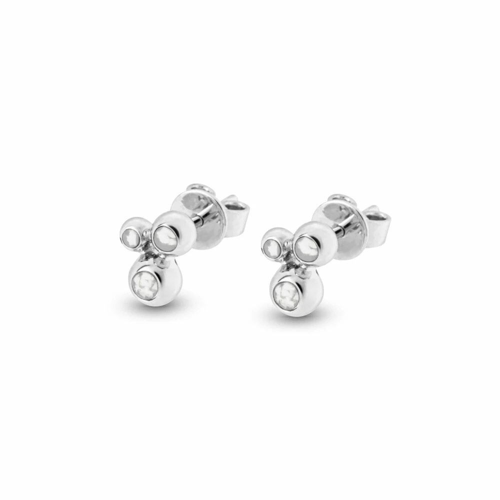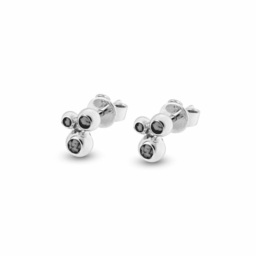 Our Rondure Array Triple Earring features three circular mounts of different sizes into which different coloured resins can be inserted including distinct ashes if desired. There is also the option to include real diamond dust. The earrings are made of Rhodium plated hallmarked 925 Sterling Silver and can be ordered in Rose, White, or Yellow gold. Theses stud earring have a butterfly clip and come in a presentation box.