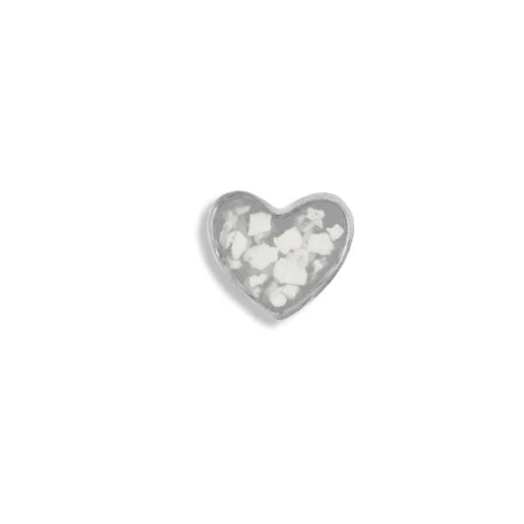 The Small Heart memorial ashes element is daintily crafted from hallmarked 925 Sterling Silver and has a protective Rhodium plating. It can be placed alone or in combination with other “Elements” in both the large and the small glass locket. The cremation ashes can be combined with one of the twelve colours or resin available, and diamond dust can also be added on request.