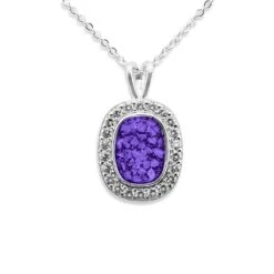 Our sterling silver Treasure memorial necklace has a large squared oval mount to hold the coloured resin containing the cremation ashes which is surrounded by Fine crystals. The special resin comes in a choice of twelve colours and real diamond dust may be added to the resin if desired. A Rhodium plating prevents tarnishing, and a 40cm + 5cm chain with lobster clasp comes included with this pendant.